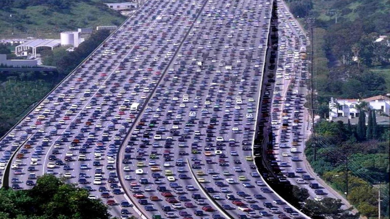 More than 20 lines of congested traffic jam in a Chinese Highway.