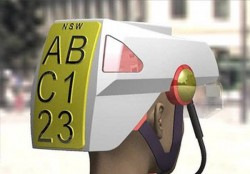 Nella foto, un casco da bicicletta con targa incorporata, sistema che è stato proposto in Australia per i ciclisti con lo scopo di punirli per le loro infrazioni, ad oggi perlopiù impunite.