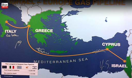 Più in generale sono stati scoperti molti giacimenti di gas in tutto l’EstMed e l’Italia è al centro dei giochi sia grazie all’ENI sia perché le coste italiane (segnatamente quelle pugliesi) sono il terminale che porterà in Europa questo gas. Infatti è stato firmato pochi giorni fa ad Atene un protocollo d’intesa tra Israele, Grecia e Cipro per costruire un gasdotto (chiamato EstMed) che attraversando il Mediterraneo arriva prima in Grecia e infine sbuca in Puglia portando dunque questo gas in Europa. Intesa che vede l’Italia al centro dei giochi pur non avendo per ora firmato.